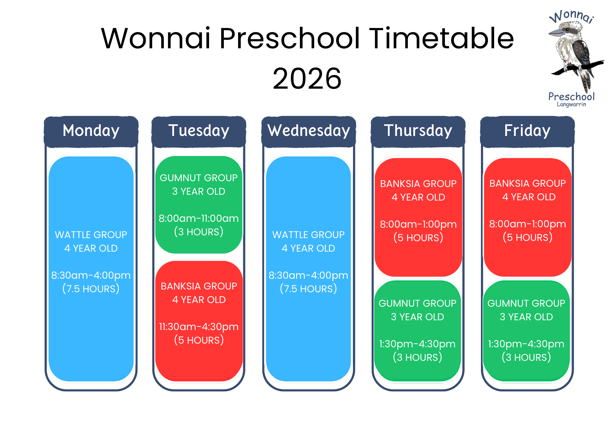 The Frankston City Council and Wonnai Preschool Enrolment Officers will notify each family in late 2025 regarding the success of your application.If your child is offered a place at Wonnai Preschool then the offer must be accepted with a non-refundable deposit payable to the preschool.